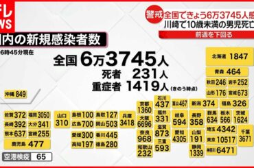 【新型コロナ】全国コロナ感染者6万3745人 川崎市で10歳未満の男児死亡
