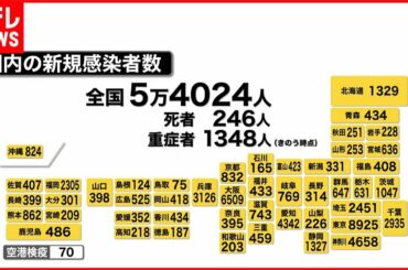 【新型コロナ】全国で5万4024人の新規感染確認 死者246人 8日