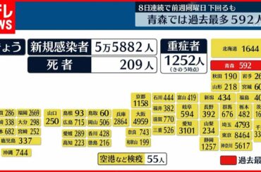 【新型コロナ】全国5万5882人の新規感染者 青森は592人と過去最多 11日