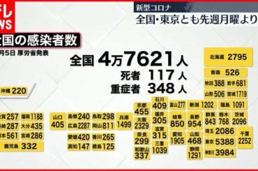 【新型コロナ】全国で4万7621人・東京で5388人の新規感染確認 いずれも先週月曜より減 5日