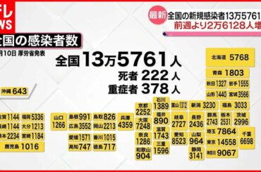 【新型コロナ】新規感染者 全国で13万5761人、東京都内で1万4558人