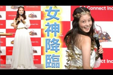 今田美桜、“女神風”で登場! ワンショルダーのワンピースで美背中を披露(CM発表会 放置少女〜百花繚乱の萌姫たち〜/今田美桜)