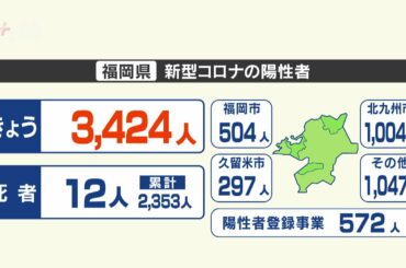 新型コロナ 福岡県3424人の陽性と12人死亡を確認