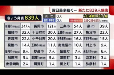 〈新型コロナ〉新潟県 新たに839人が感染 2日連続で800人超 曜日最多続く… (22/04/07 18:41)