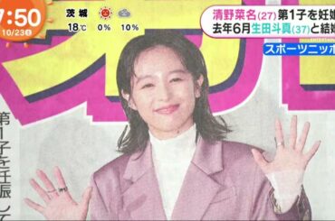 清野菜名(27)第1子を妊娠去年6月生田斗真(37)と結婚 【めざましどようび 2021年10月23日】