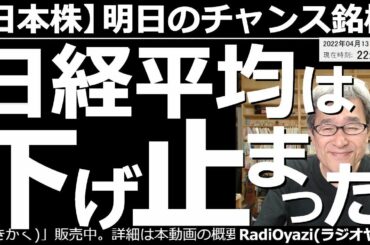 INVESTMENT 2022.04.13 【日本株-明日のチャンス銘柄】日経平均は下げ止まった? 今日は日経平均が500円ほど上昇し、久々の活況相場となった。ただ、これで下げ止まり上昇に向かうかどうかは、まだわからない。明日の値動きが重要だ。…
