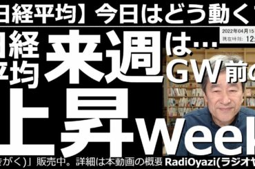 INVESTMENT 2022.04.15 【日経平均-今日はどう動く?】日経平均、来週はGW(ゴールデンウイーク)前の「上昇Week」か? 円安も追い風か。日経平均が強い。来週は27,500円を目指す可能性あり。ただし不安定な値動きに要注意。…
