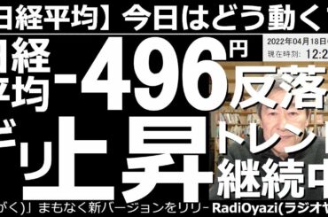 INVESTMENT 2022.04.18 【日経平均-今日はどう動く?】日経平均は-496円(反落)だが、ギリギリ上昇トレンド継続中! 週明けの指数先物が弱い。地政学リスクの影響だろうか、米指数も下げている。ただ、日経のトレンドはまだ上向だ。…