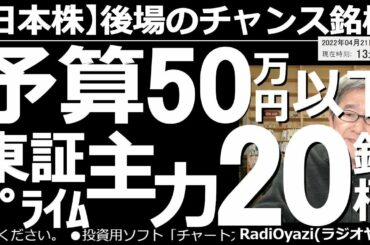 INVESTMENT 2022.04.21 【日本株-後場のチャンス銘柄】予算50万円以下で買える、東証プライム主力の20銘柄! 株価が安く、分散投資にも向く、東証の主力銘柄をチャート分析して売買タイミングを探る。GW等イベントが多いので注意。…