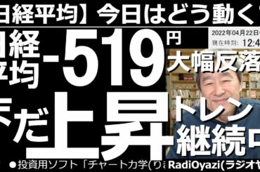 INVESTMENT 2022.04.22 【日経平均-今日はどう動く?】日経平均は(前引)-519円安(大幅反落)だが、まだ上昇トレンド継続中! 昨夜の米パウエルFRB議長の発言を機に米市場が大幅下落。相場は一気にリスクオフに。さてこの先は?…
