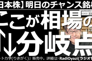 INVESTMENT 2022.04.07 【日本株-明日のチャンス銘柄】ここが相場の分岐点! 日米ともに、主要な株価指数が、25日移動平均線(25MA)の水準までレートを下げている。このあと、25MAを割り込むか?跳ね上がるか?相場は分岐点。…