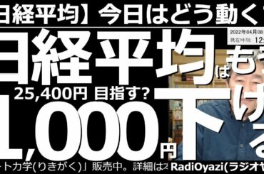 INVESTMENT 2022.04.08 【日経平均-今日はどう動く?】日経平均は、もう1,000円下げる?25,400円を目指す? 過去の値動きを参考にチャート分析すると、日経平均は、あと千円下げる可能性がある。どんなトレードをすればよい?…