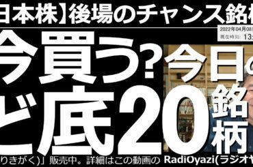 INVESTMENT 2022.04.08 【日本株-後場のチャンス銘柄】今買う?ど底20銘柄! 今日は相場が軟調になっており、RSI(9)が低下している「ど底銘柄(R式)」が多数出現している。銘柄ごとに詳しくチャート分析して、売買を検討する。…