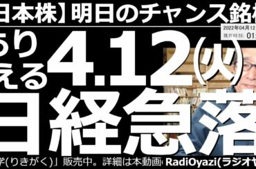 INVESTMENT 2022.04.11 【日本株-明日のチャンス銘柄】ありえる4月12日(火)日経平均急落! 金利上昇が嫌気され、アメリカ市場が軟調だ。ナスダックは25MAを割る下落となり、為替は急激な円安。夜は強い日経だが急落の恐れあり。…
