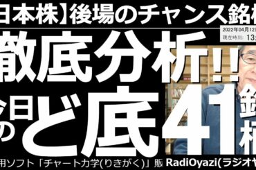 INVESTMENT 2022.04.12 【日本株-後場のチャンス銘柄】徹底分析!「ど底」41銘柄! 日経平均が下落する中、株価が安く、反発力がありそうな個別銘柄を探す、「ど底」銘柄特集。今日で3回目。そろそろ買い時かも?という銘柄はあるか?…