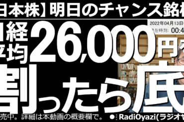 INVESTMENT 2022.04.12 【日本株-明日のチャンス銘柄】日経平均が26,000円を割ったら「底」? 株式市場は軟調だが、CPIが出た後の米国市場は反発している。ただ、相場のトレンドは下向きだ。しっかり下げるのを待って買いたい。…