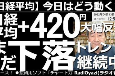 INVESTMENT 2022.04.13 【日経平均-今日はどう動く?】日経平均は+420円(前引)と大幅反発だが、まだ「下落トレンド」が継続中! 日経平均は久々の反発。昨夜の米CPIのコア低下が好感された模様だが、いぜんトレンドは下向きだ。…