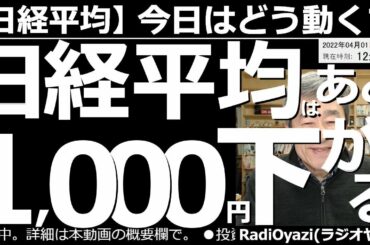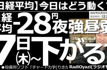 INVESTMENT 2022.04.05 【日経平均-今日はどう動く?】日経平均-28円「夜強く昼弱い」4月7日(木)から下がり始める? アメリカ時間には買われて、28,000円を超えていた日経平均、昼は無残に下落している。その理由を分析。…