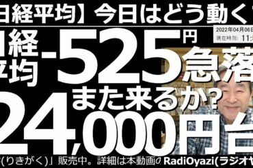 INVESTMENT 2022.04.06 【日経平均-今日はどう動く?】日経平均-525円と急落!また来るか?24,000円台! ハト派と見なされているFRBブレイナード氏が、積極的な金融引き締めに言及したことで米市場が下落。この先どうなる?…