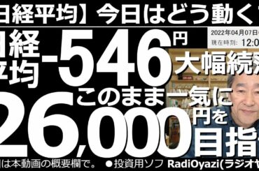 INVESTMENT 2022.04.07 【日経平均-今日はどう動く?】日経平均-546円の大幅続落!このまま一気に26,000円を目指す? アメリカは金融引き締めムード。「株が下がるのもやむを得ない」といった発言も。株価は、しばらく下落か。…