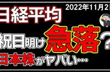 【5分解説】日経平均-300円📉☔日本株は急落の可能性🤔❓(11/14)