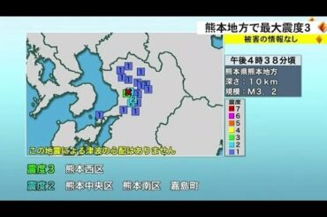 熊本地方で最大震度3 被害の情報なし (23/02/11 18:00)
