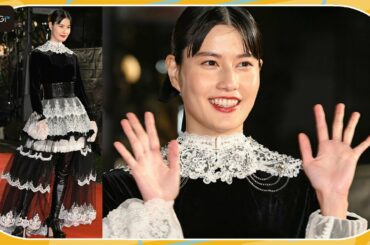 <東京国際映画祭>橋本愛、ミニスカ×ブーツでクラシカルなモノトーンコーデ レッドカーペット&オープニングに登場