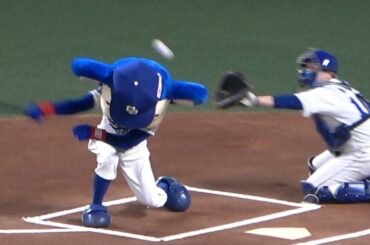 今週だけで3度目の始球式デッドボールになりかけたところをギリギリで回避したドアラ(2021/06/06)