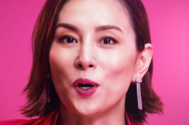 米倉涼子、ド派手マゼンダスーツでハイテンションにプレゼン! 「楽天モバイル」新CMが公開