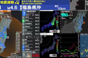 2022年10月7日 緊急地震速報(予報) 最大震度3 震源 福島県沖 深さ 30km