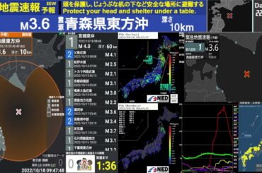緊急地震速報(予報) 震源 青森県東方沖 最大震度1 深さ10km マグニチュード3.6
