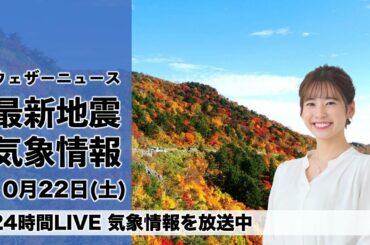 【LIVE】昼の最新気象ニュース・地震情報 2022年10月22日(土)/西日本は25℃以上の夏日、北日本や北陸は一部で雨〈ウェザーニュースLiVE〉