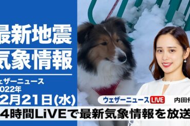 【LIVE】昼の最新気象ニュース・地震情報 2022年12月21日(水)/西から雨や雪が降り出す〈ウェザーニュースLiVE〉