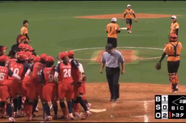 【日米対抗ソフトボール】2018.06.20 日本 渥美万奈 人工芝ヘッドスライディングで出塁