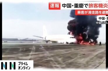 中国・重慶で旅客機が炎上 乗客が滑走路を避難か
