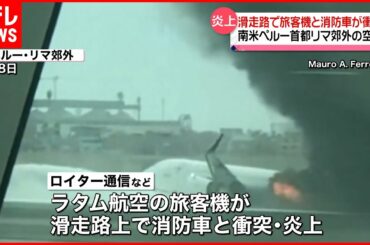 【炎上】滑走路で旅客機と消防車が衝突 消防隊員2人が死亡 南米ペルーの空港