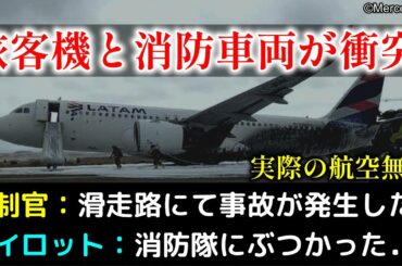 【航空無線】滑走路にて旅客機と消防車両が衝突し、火災が発生/実際の航空無線(日本語字幕)