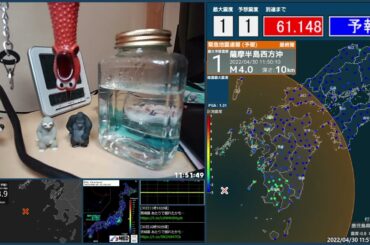 【緊急地震速報 (予報)】薩摩半島西方沖 最大震度0 M3.9 深さ1.2km 2022/4/30 11:50頃 観測点震度-0