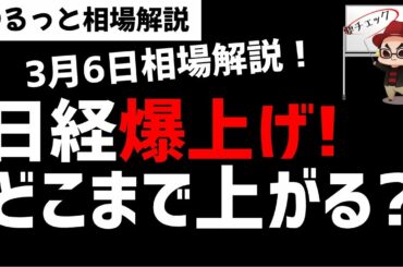 【3月6日のゆるっと相場解説】日経平均株価爆上げ!どこまで上がるのか?ズボラ株投資