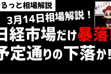 【3月14日のゆるっと相場解説】日経平均株価は暴落!予定通りの下落なのか?日本株だけなぜ?ズボラ株投資