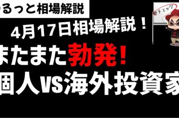 【4月17日のゆるっと相場解説】日経平均株価は高値圏で個人投資家と海外投資家の戦いか?ズボラ株投資