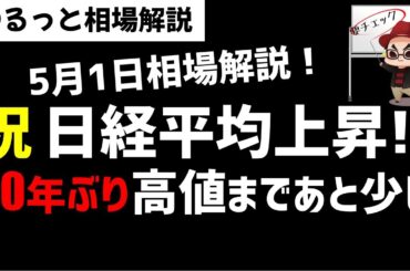 【5月1日のゆるっと相場解説】日経平均株価は直近高値超え!バブル以来の高値水準まであとちょっと!ズボラ株投資