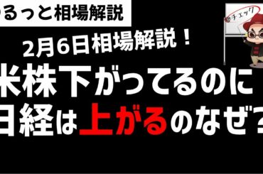 【2月6日のゆるっと相場解説】米国株市場が下がっているのになんで日経平均株価はあがってるのか?ズボラ株投資