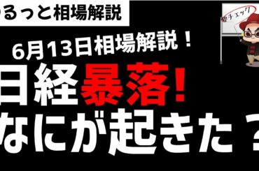 【6月13日のゆるっと相場解説】日経平均株価急落!市場では何が起きているのか?ズボラ株投資