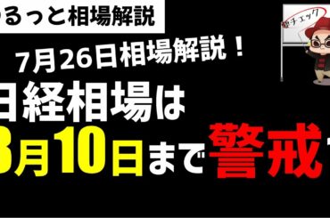 【7月26日のゆるっと相場解説】日経平均株は8月10日まで要警戒か?ズボラ株投資