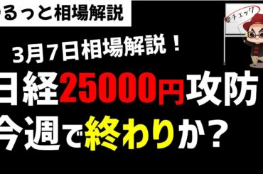 【3月7日のゆるっと相場解説】日経平均株価大暴落!25000円攻防戦はどうなる?ズボラ株投資