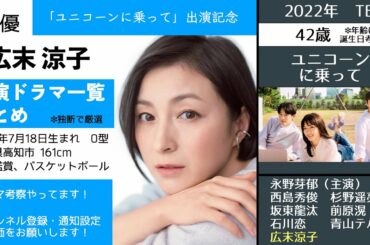 DRAMA 2022.07.12 【ユニコーンに乗って】広末涼子 出演ドラマ一覧まとめ!桜の塔 ニッポンノワール コンフィデンスマンJP 奥様は取り扱い注意 ナオミとカナコ 龍馬伝 できちゃった結婚 オヤジぃ リップスティック…