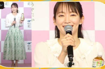 吉岡里帆、白シャツ×ジャガードスカートで春先取り! 「綾鷹 桜デザインボトル」発売記念PRイベント【MAiDiGi TV】