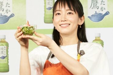 吉岡里帆、エプロン姿で手作り料理披露 かまいたちもメロメロに 「綾鷹」PRイベント