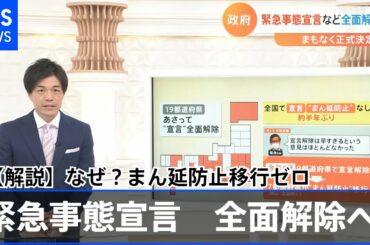 緊急事態宣言・まん延防止 全て解除夕方正式決定へ 1カ月めどに時短要請は継続